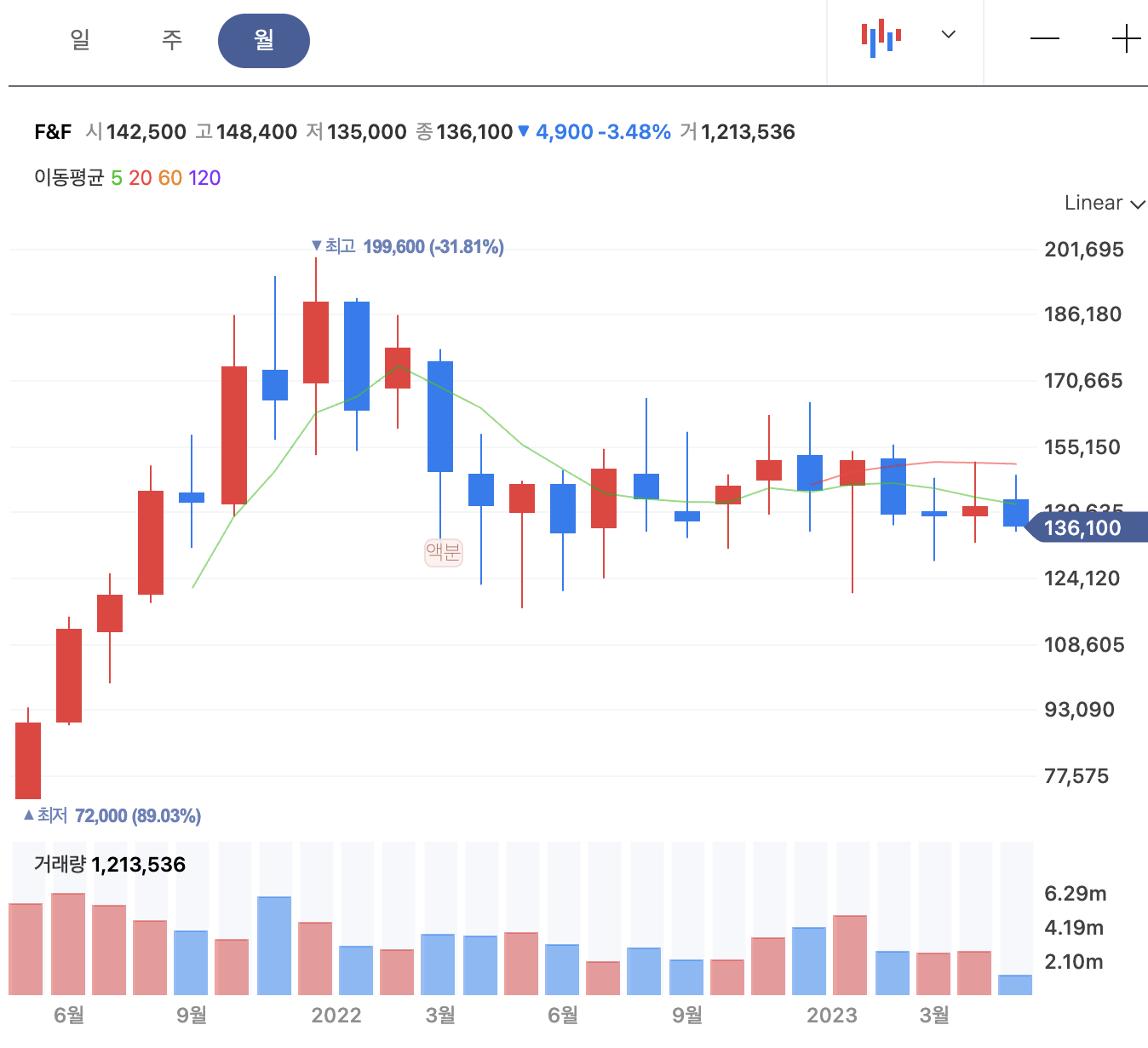 에프앤에프(F&F)는 1992년 창립되어 MLB, 디스커버리 익스페디션 등의 대표 브랜드를 배출한 한국의 패션 기업임. 디지털 트랜스포메이션(Digital Transformation)을 통한 혁신적인 패션 시스템으로 글로벌 브랜드를 육성하고 있음. 2021년 5월 인적분할하여 지주회사인 ‘F&F 홀딩스’ 와 패션사업 회사인 ‘F&F’ 로 나뉘어졌으며, 글로벌 골프 브랜드 ‘테일러메이드’의 전략적 투자자로 참여하였음.
